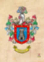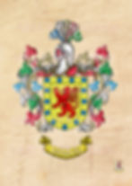 Lámina heráldica de dos apellidos inclinados en horizontal.